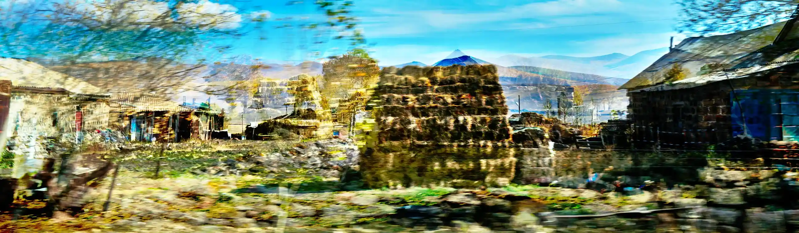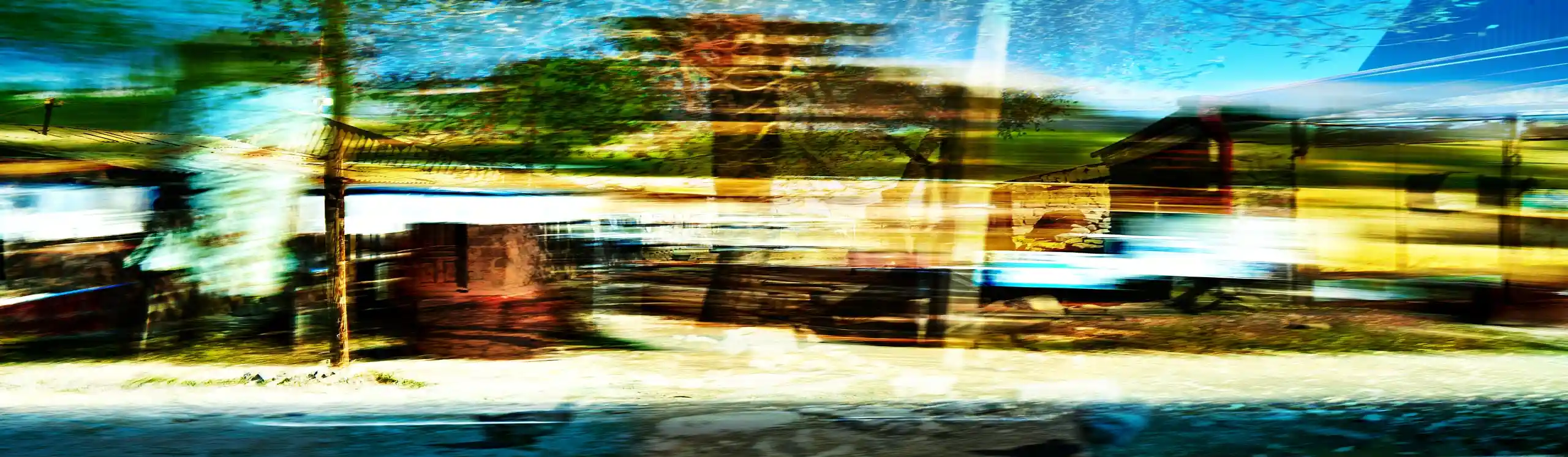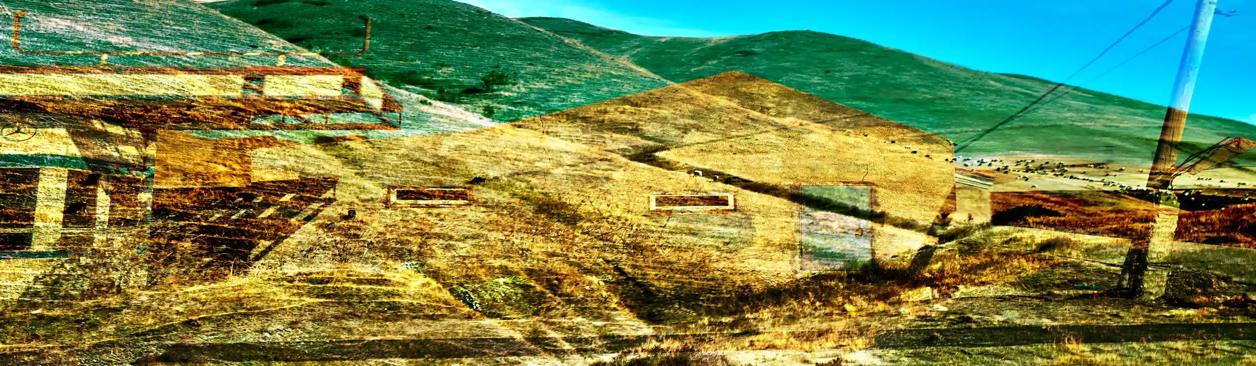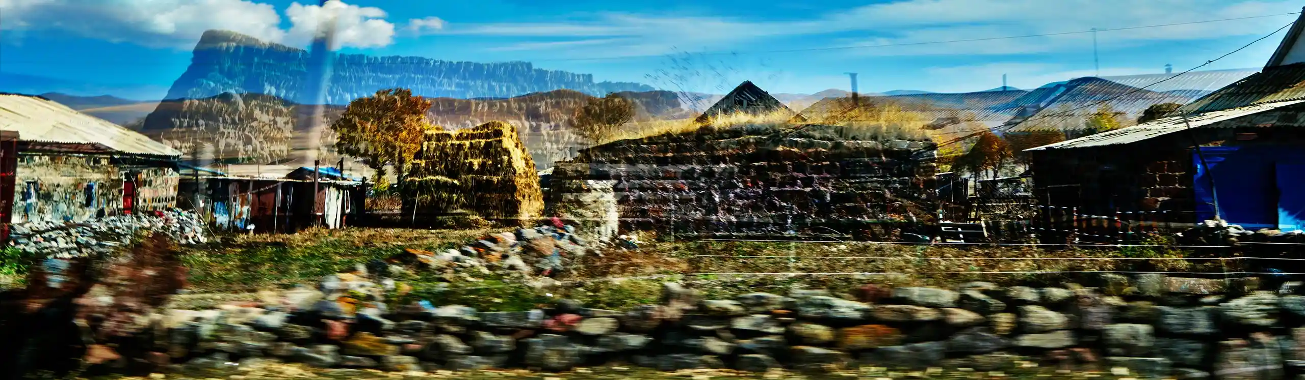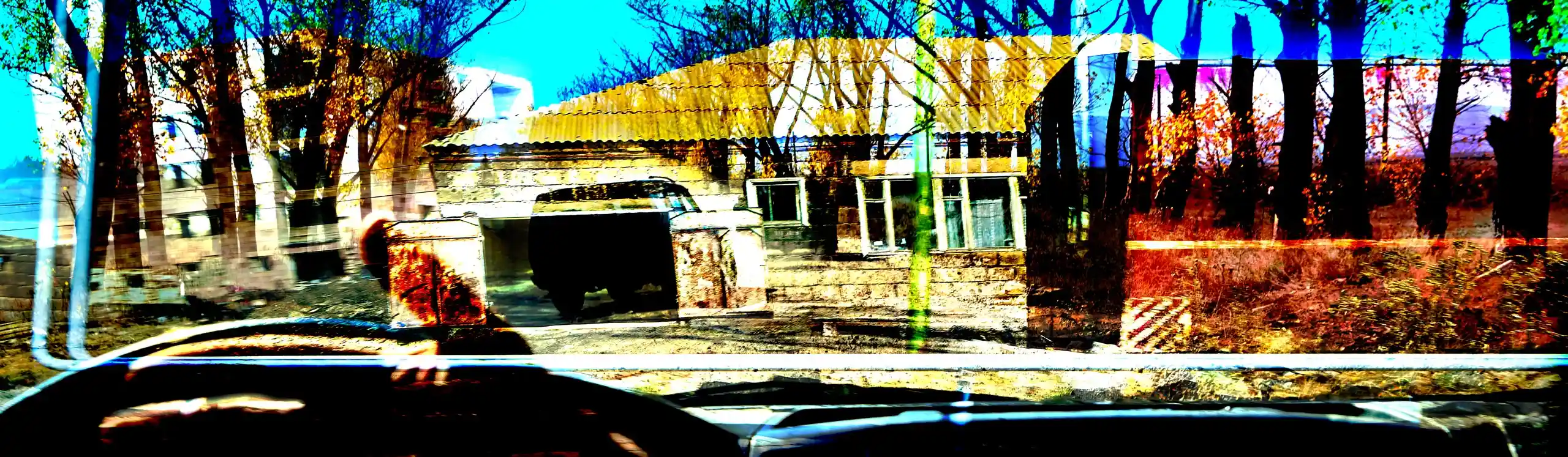 KARI-K’AMI – das sind die georgischen und armenischen Wörter für Fahrtwind. Dieser Fahrtwind durchzieht das Area Composing als Leitmotiv im Sound und in den Bildern. Peter Hölscher nimmt die Fotografien auf seiner Reise von Georgien nach Armenien aus einem fahrenden Auto heraus auf. Was die Kamera in diesen unwiederbringlichen Augenblicken der Reise einfängt, kann er nur bedingt kontrollieren. Erst nach seiner Rückkehr offenbart sich der Schatz – ein spannungsvoller Moment. Bei der Bildentwicklung kristallisiert er intensive Farben und erstaunlich konkrete Motive heraus. Seine Bildkomposition zeigt die bizarren Eingriffe des Menschen in die archaische Landschaft des Kaukasus und die Zerstörung durch Erdbeben und Krieg: Trümmerfelder, aus denen neues Leben erwächst.