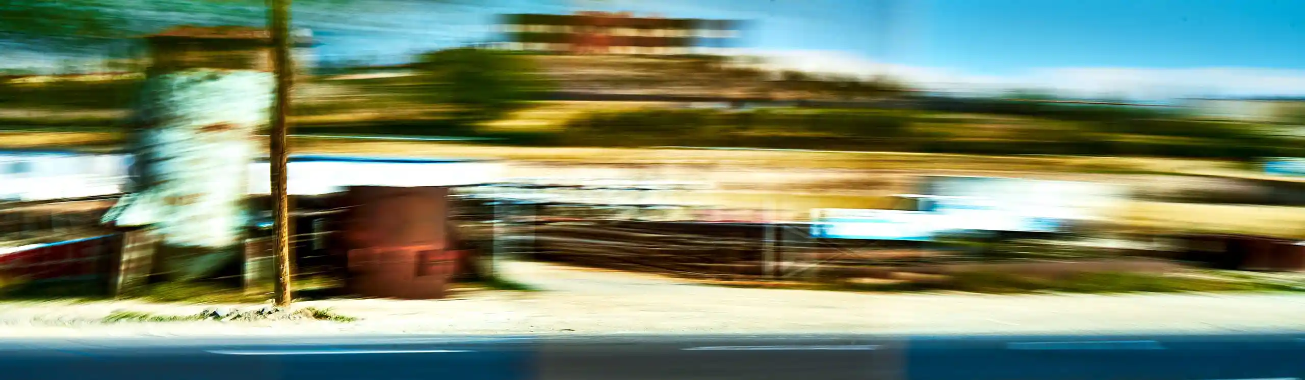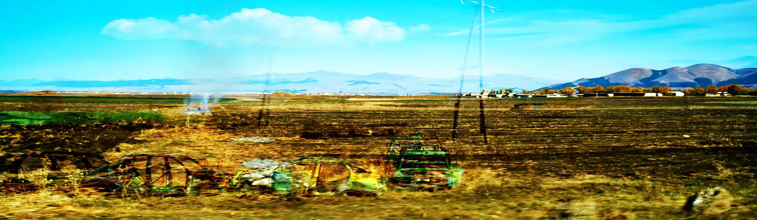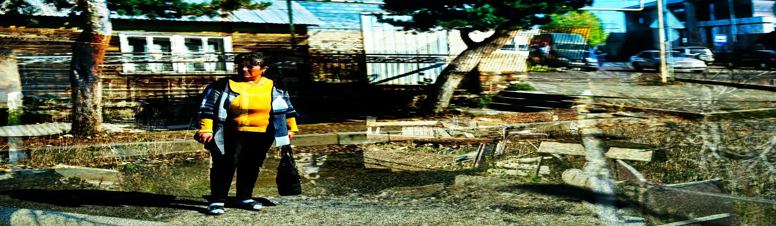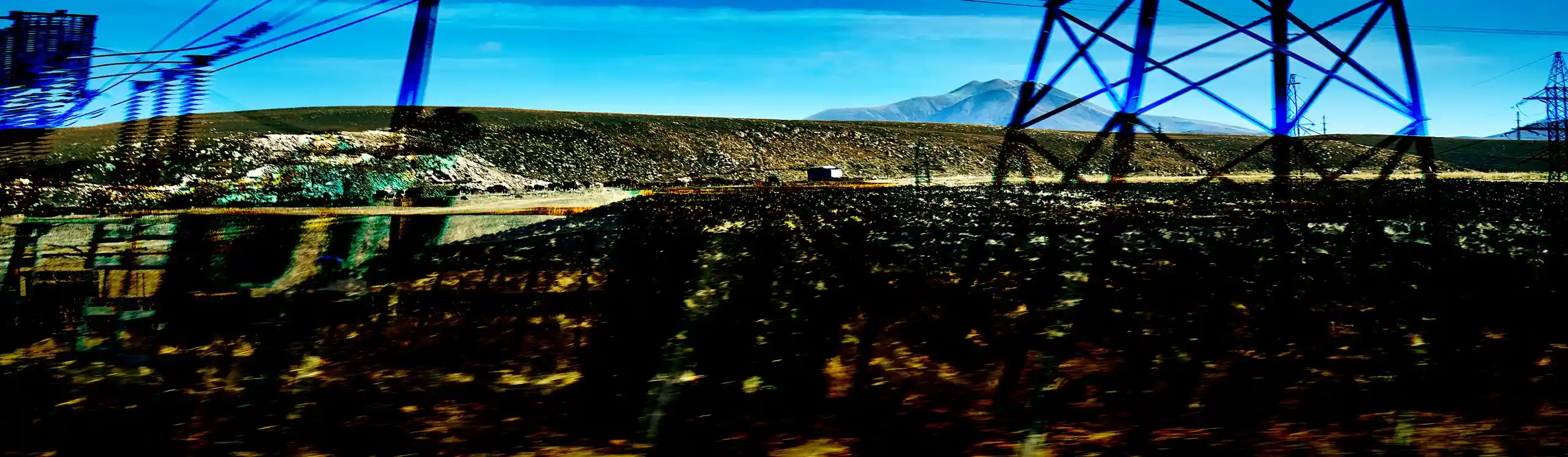 KARI-K’AMI – das sind die georgischen und armenischen Wörter für Fahrtwind. Dieser Fahrtwind durchzieht das Area Composing als Leitmotiv im Sound und in den Bildern. Peter Hölscher nimmt die Fotografien auf seiner Reise von Georgien nach Armenien aus einem fahrenden Auto heraus auf. Was die Kamera in diesen unwiederbringlichen Augenblicken der Reise einfängt, kann er nur bedingt kontrollieren. Erst nach seiner Rückkehr offenbart sich der Schatz – ein spannungsvoller Moment. Bei der Bildentwicklung kristallisiert er intensive Farben und erstaunlich konkrete Motive heraus. Seine Bildkomposition zeigt die bizarren Eingriffe des Menschen in die archaische Landschaft des Kaukasus und die Zerstörung durch Erdbeben und Krieg: Trümmerfelder, aus denen neues Leben erwächst.
