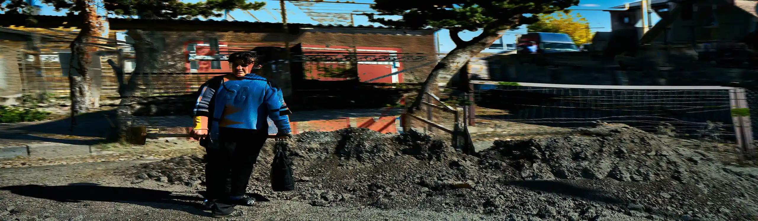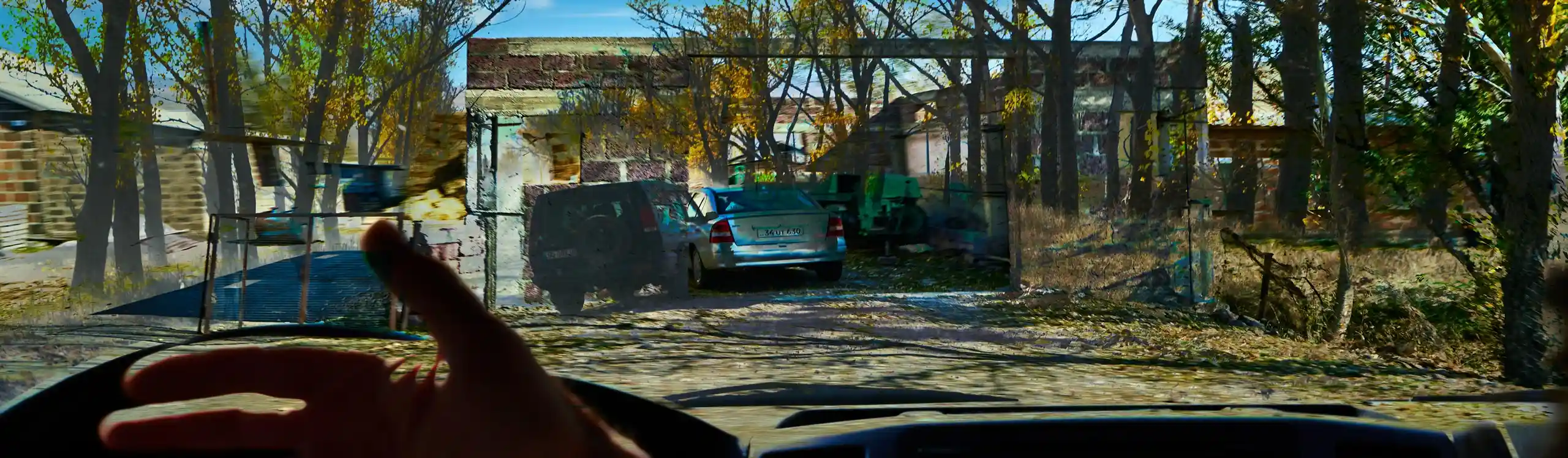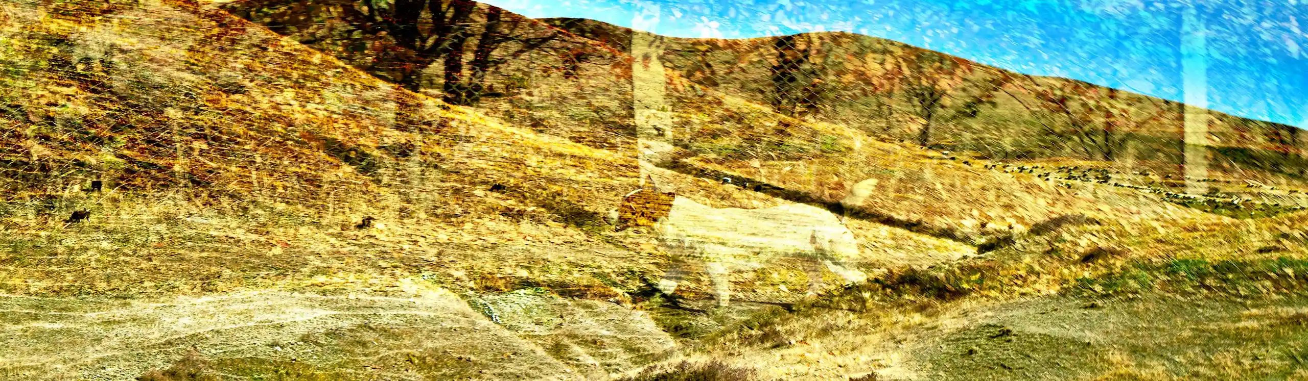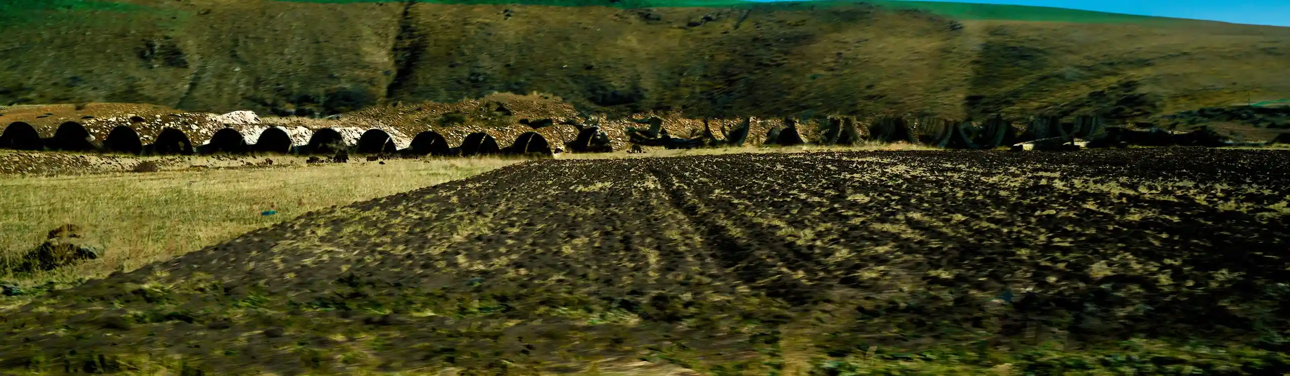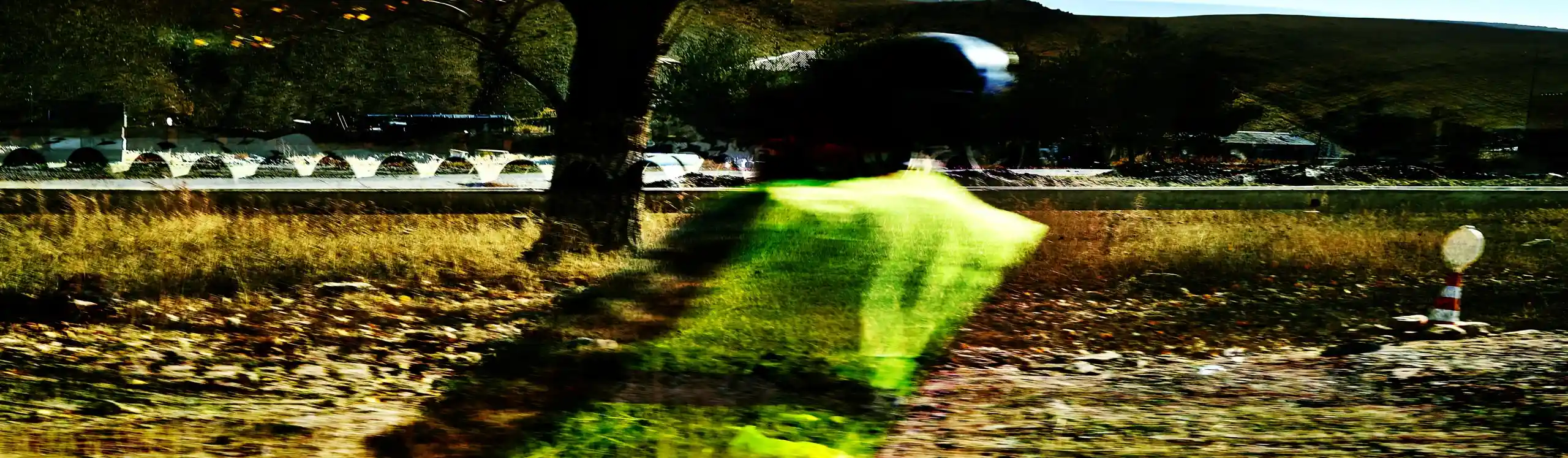 KARI-K’AMI – das sind die georgischen und armenischen Wörter für Fahrtwind. Dieser Fahrtwind durchzieht das Area Composing als Leitmotiv im Sound und in den Bildern. Peter Hölscher nimmt die Fotografien auf seiner Reise von Georgien nach Armenien aus einem fahrenden Auto heraus auf. Was die Kamera in diesen unwiederbringlichen Augenblicken der Reise einfängt, kann er nur bedingt kontrollieren. Erst nach seiner Rückkehr offenbart sich der Schatz – ein spannungsvoller Moment. Bei der Bildentwicklung kristallisiert er intensive Farben und erstaunlich konkrete Motive heraus. Seine Bildkomposition zeigt die bizarren Eingriffe des Menschen in die archaische Landschaft des Kaukasus und die Zerstörung durch Erdbeben und Krieg: Trümmerfelder, aus denen neues Leben erwächst.